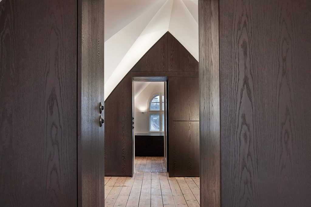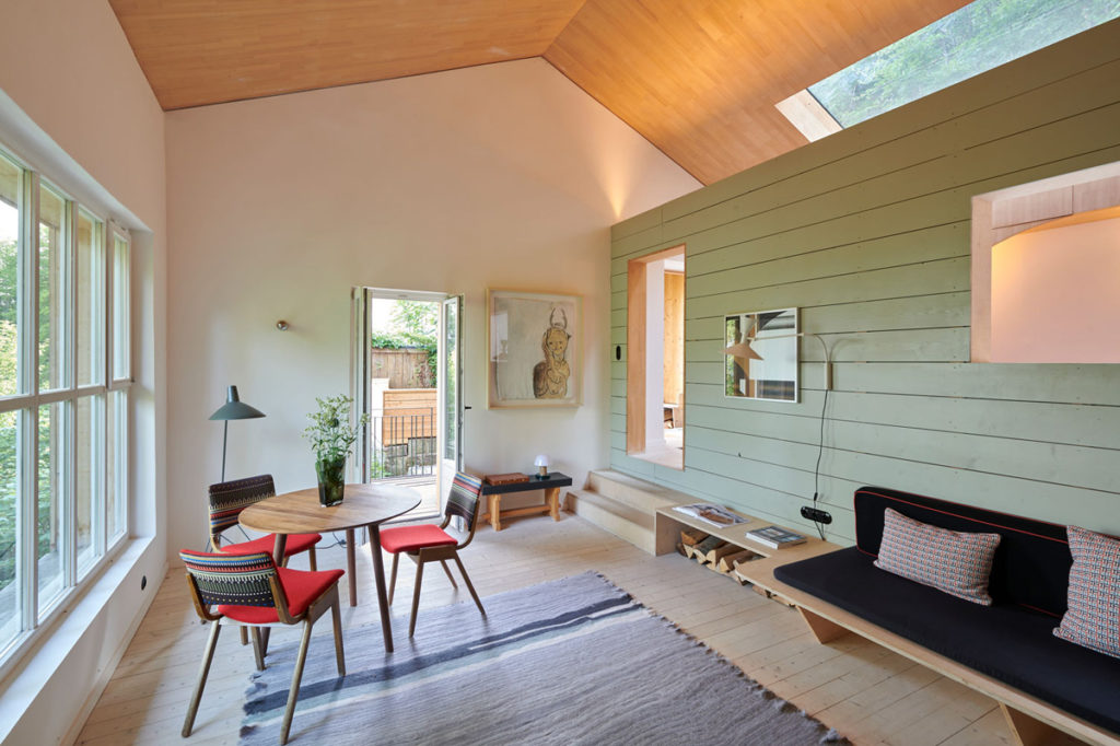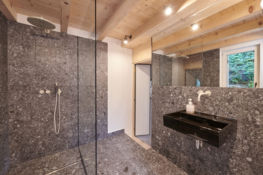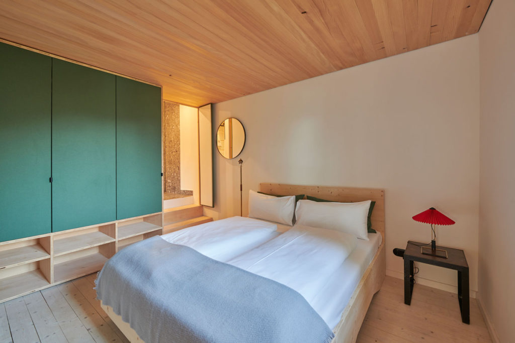 Die weitläufige Waldlandschaft in Urfeld am Walchensee bildet den Hintergrund für das von Arnold / Werner kernsanierte und neu strukturierte Ferienhaus aus den 1960er-Jahren. Im Mittelpunkt steht die Idee, vorhandene und lokale Ressourcen einzusetzen, um einem baufälligen Altbau neues Leben einzuhauchen. Und so wurde für den neuen Dachstuhl, die sanft geschwungene Gebäudehülle und die Einbaumöbel ausschließlich Weißtanne aus der nahegelegenen Jachenau zum Einsatz kam. Wesentlich für die geborgene Raumatmosphäre sind die Konzentration auf nur wenige natürliche Materialien, die zurückhaltende Farbigkeit sowie feinsinnige Einrichtungsdetails. Dank der dachintegrierten Photovoltaikpaneele, der Abwasserreinigungsanlage und des Heizkamins lässt sich das Haus – sommers wie winters – autark nutzen.